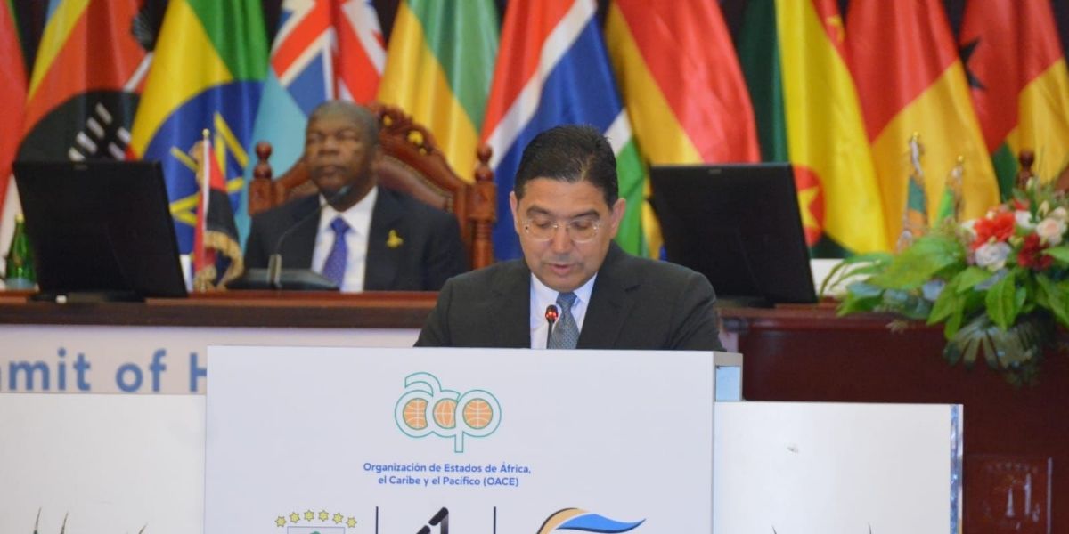 وأكد وزير الشؤون الخارجية والتعاون الإفريقي والمغاربة المقيمين بالخارج، ناصر بوريطة، خلال كلمة أمام رؤساء دول وحكومات البلدان الأعضاء في منظمة دول إفريقيا والكاريبي والمحيط الهادئ، التي يحضر المغرب بصفته ضيف شرف في أشغال قمتها الحادية عشرة، أن “المغرب، تحت القيادة المتبصرة لصاحب الجلالة الملك محمد السادس، نصره الله، اعتمد خيارا استراتيجيا، منسجما ولا رجعة فيه، يتمثل في ترسيخ ارتباطه بإفريقيا وحرصه على التعاون جنوب–جنوب”.